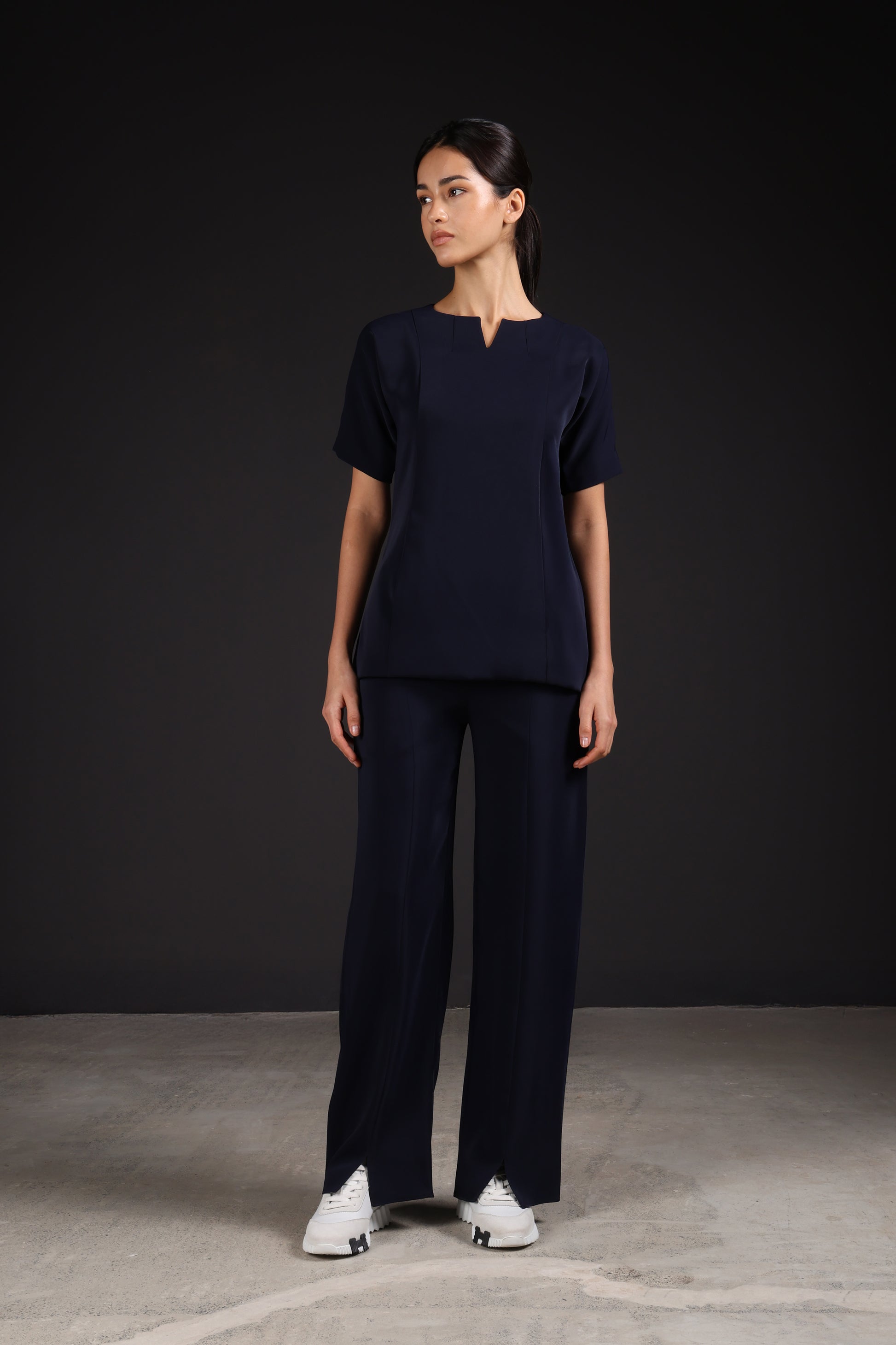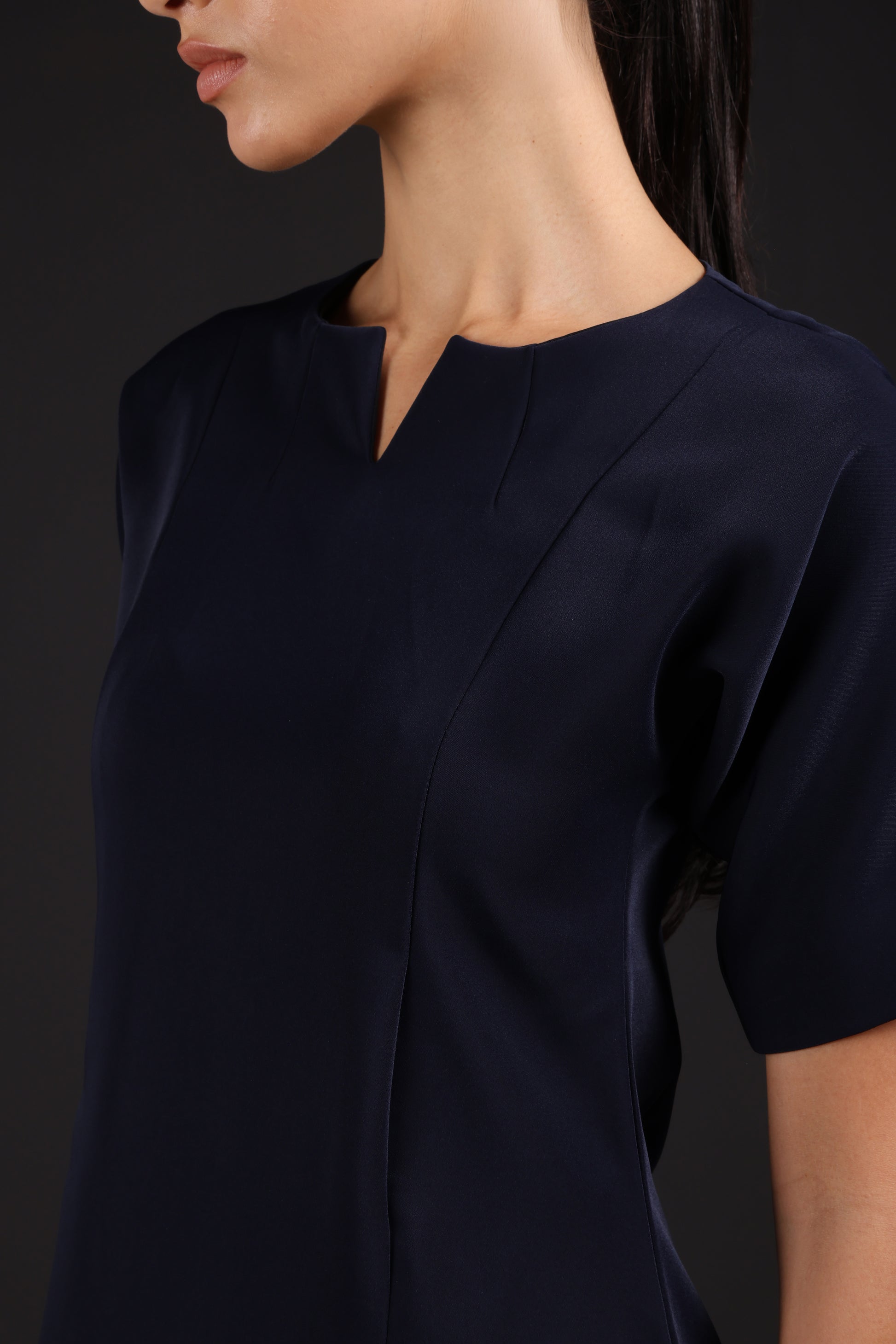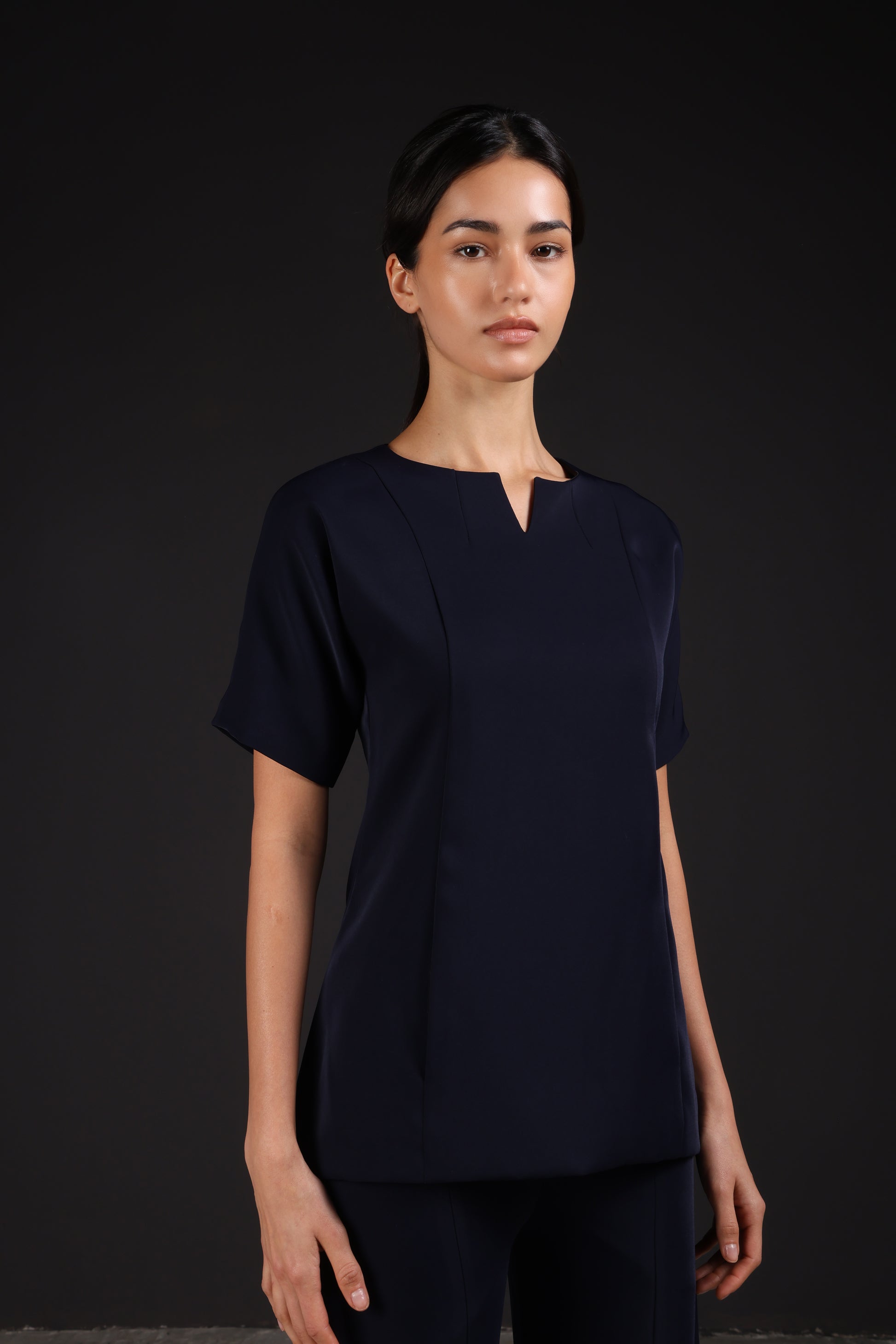 Designed for a flattering fit, this shirt features a shaped waist that enhances the silhouette. Discreet hidden pockets add functionality, while a subtle neckline opening adds a refined detail. Crafted for comfortable, effortless everyday wear.