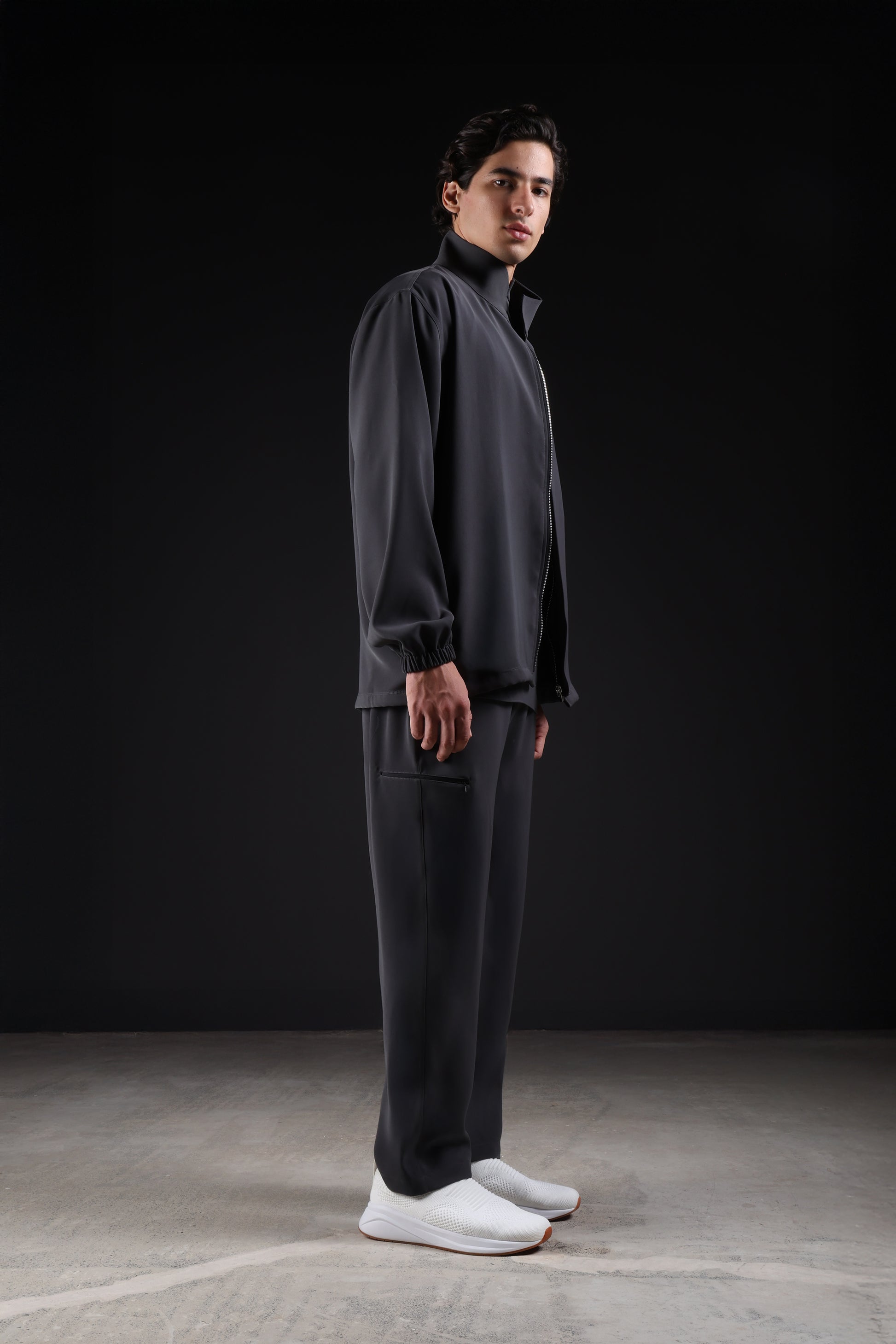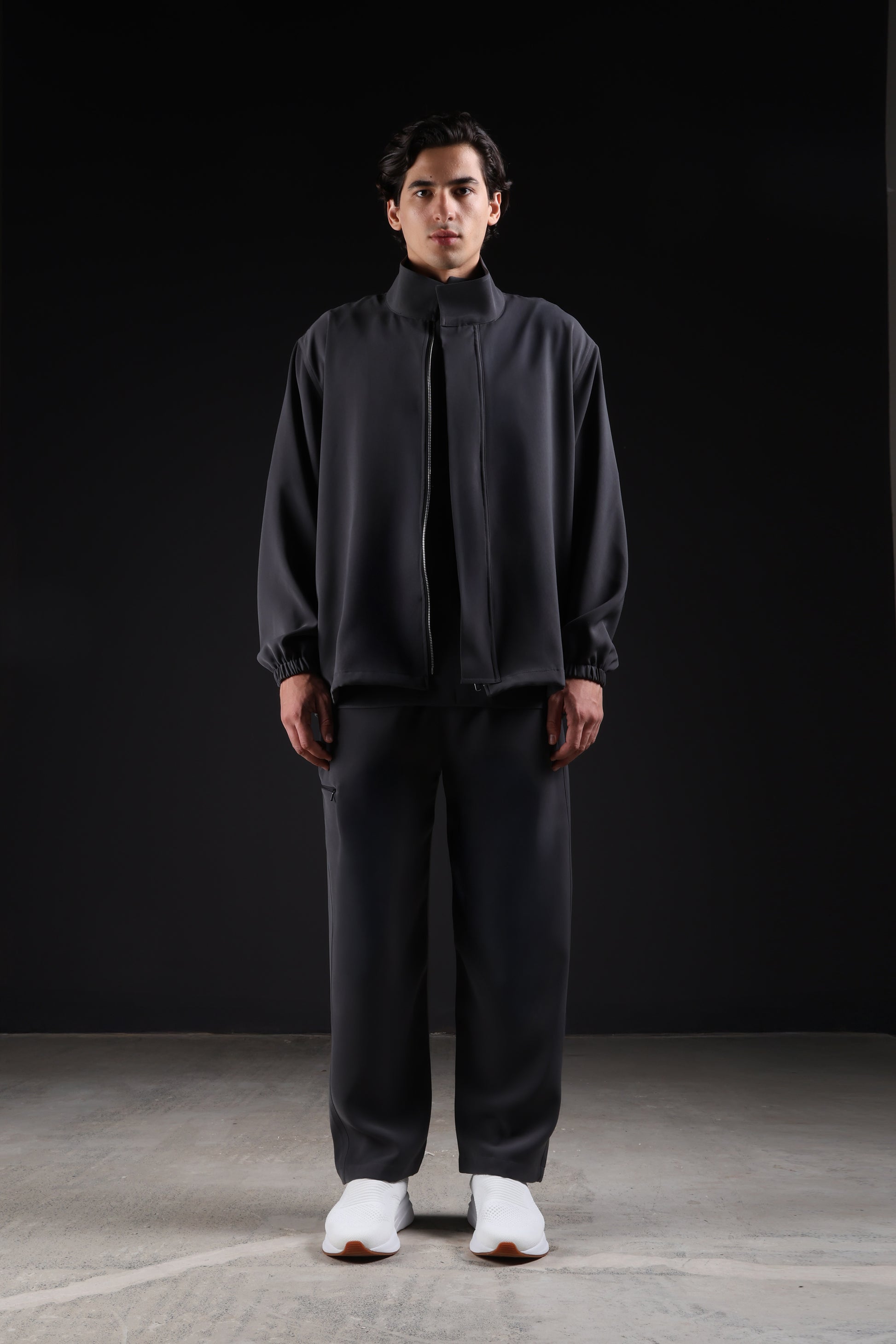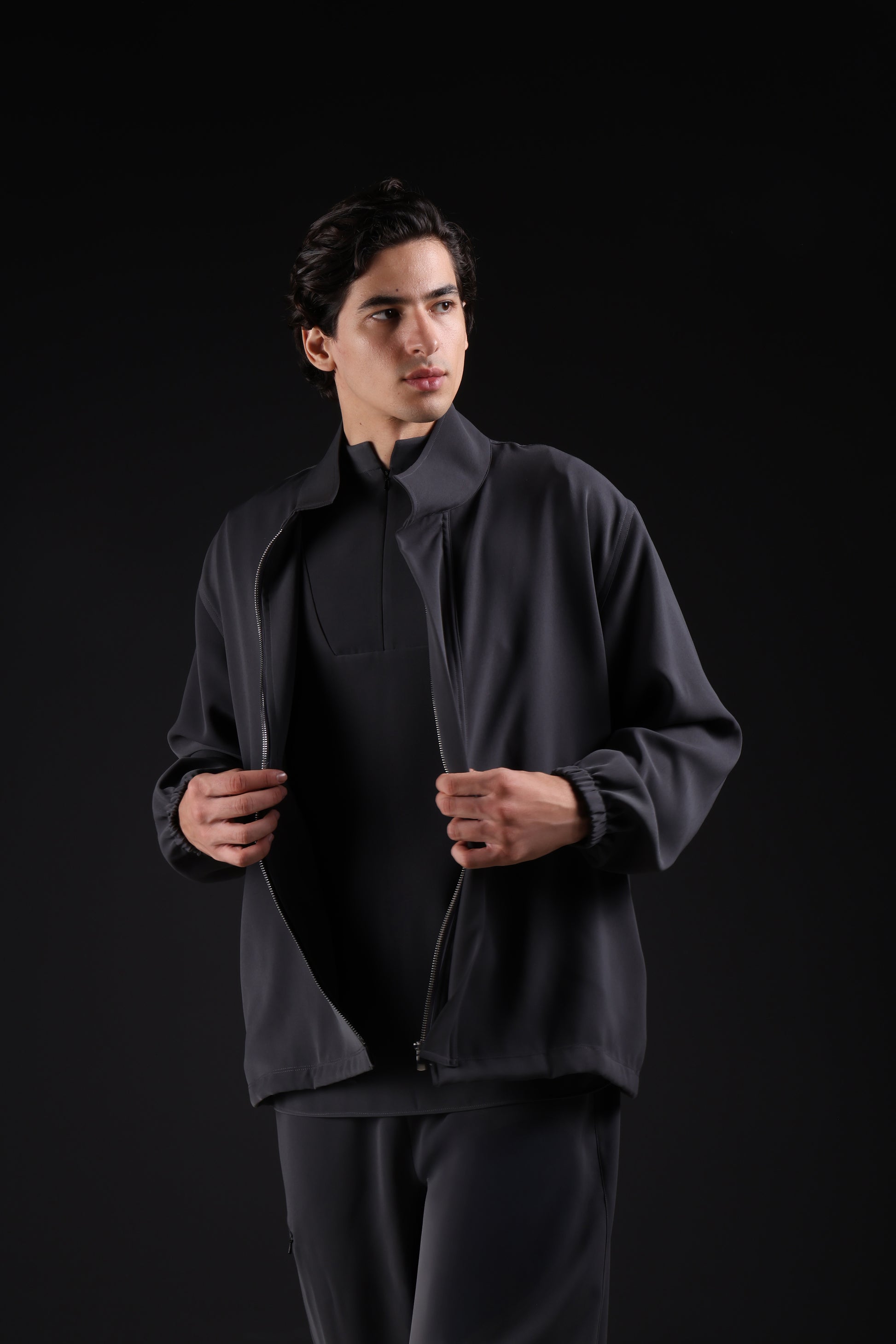 Designed with practicality in mind, this jacket features a high neck, front zipper, and elastic hem for a secure feel. Multiple pockets add convenience. Made from exceptionally soft fabric, it delivers everyday comfort, easy wear, and a confidence.