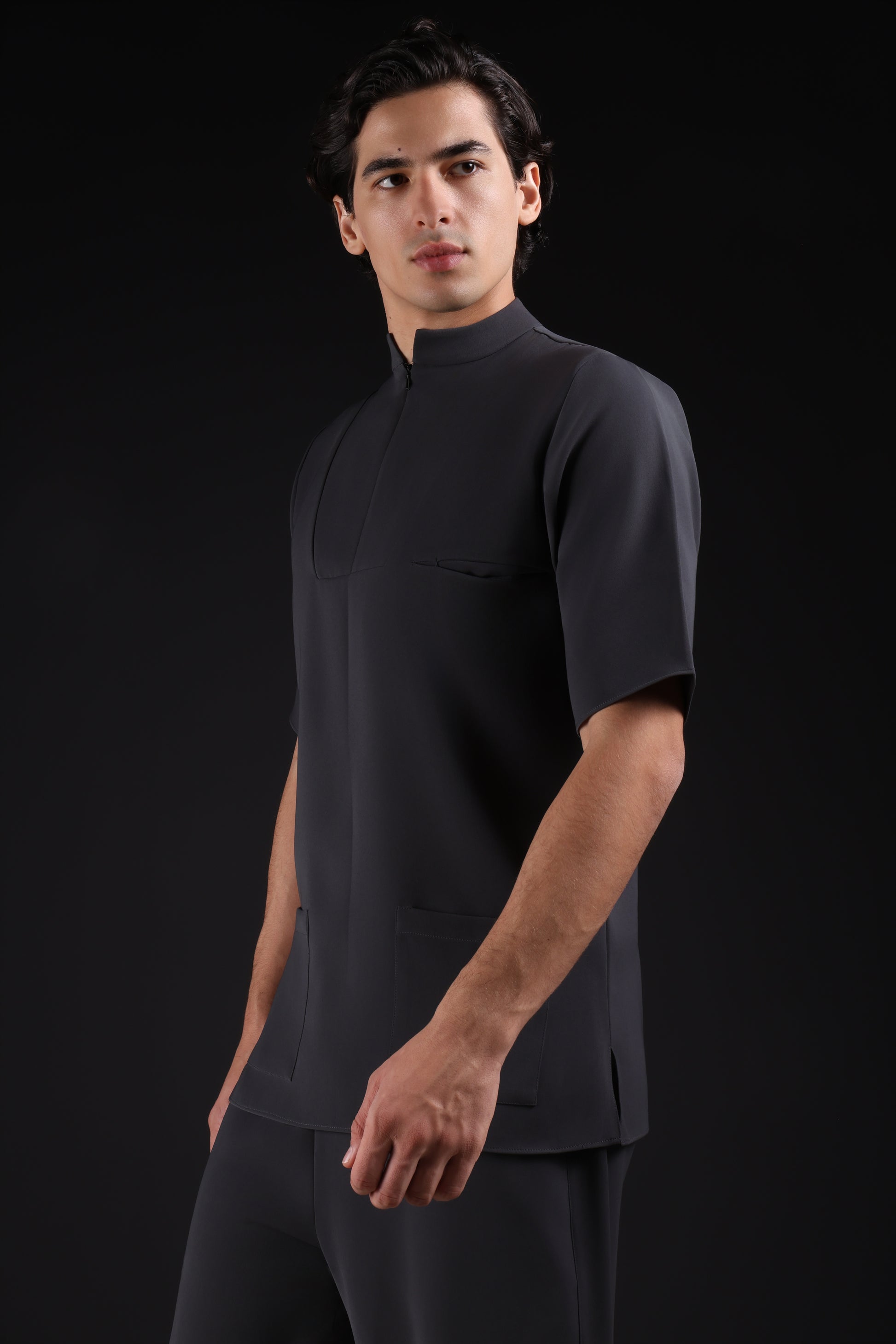 A clean, functional shirt finished with a small front zipper and two pockets. Made from lightweight, breathable fabric for comfortable, relaxed wear.