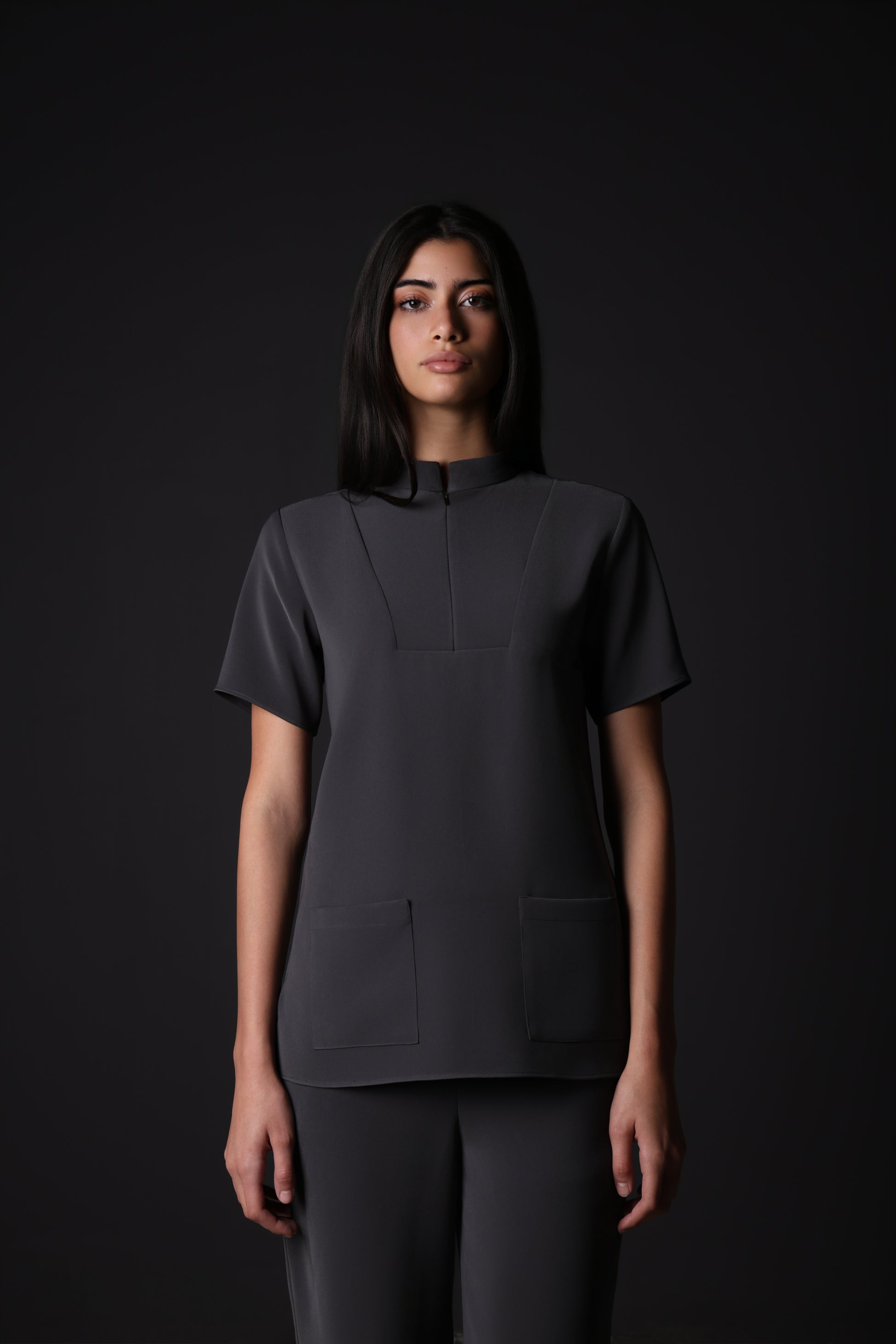 A clean, functional shirt finished with a small front zipper and two pockets. Made from lightweight, breathable fabric for comfortable, relaxed wear.